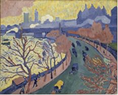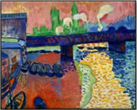 ![]() Fauve painters sought to “liberate” colors by investing objects with atypical colors, as in André Derain’s Charing Cross Bridge, London, (1906). |