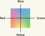 Note that these attributes are opposites, like hot and cold. Color nerves sense green or red — but never both; and blue or yellow — but never both. Thus, we never see bluish-yellows or reddish-greens.